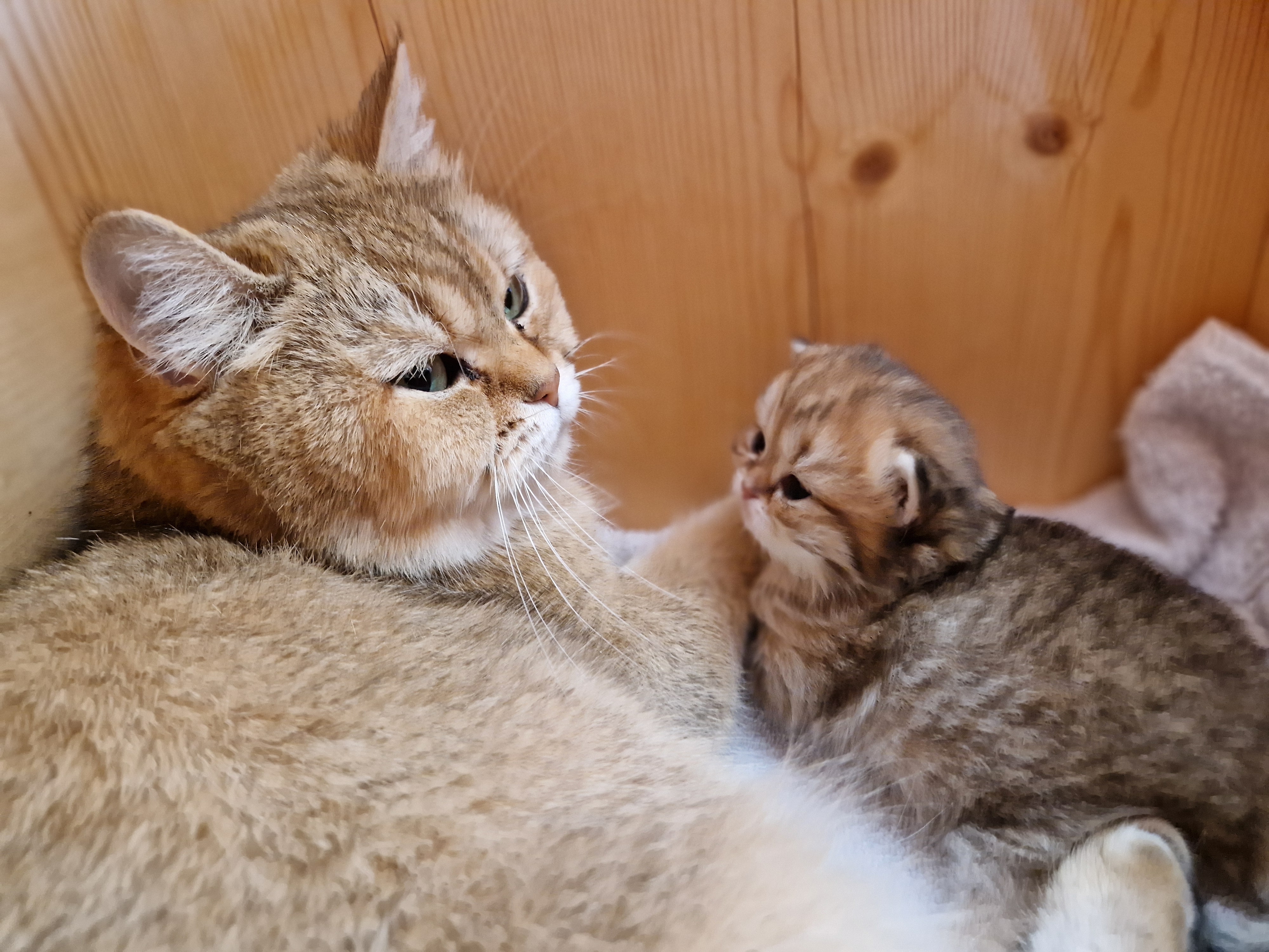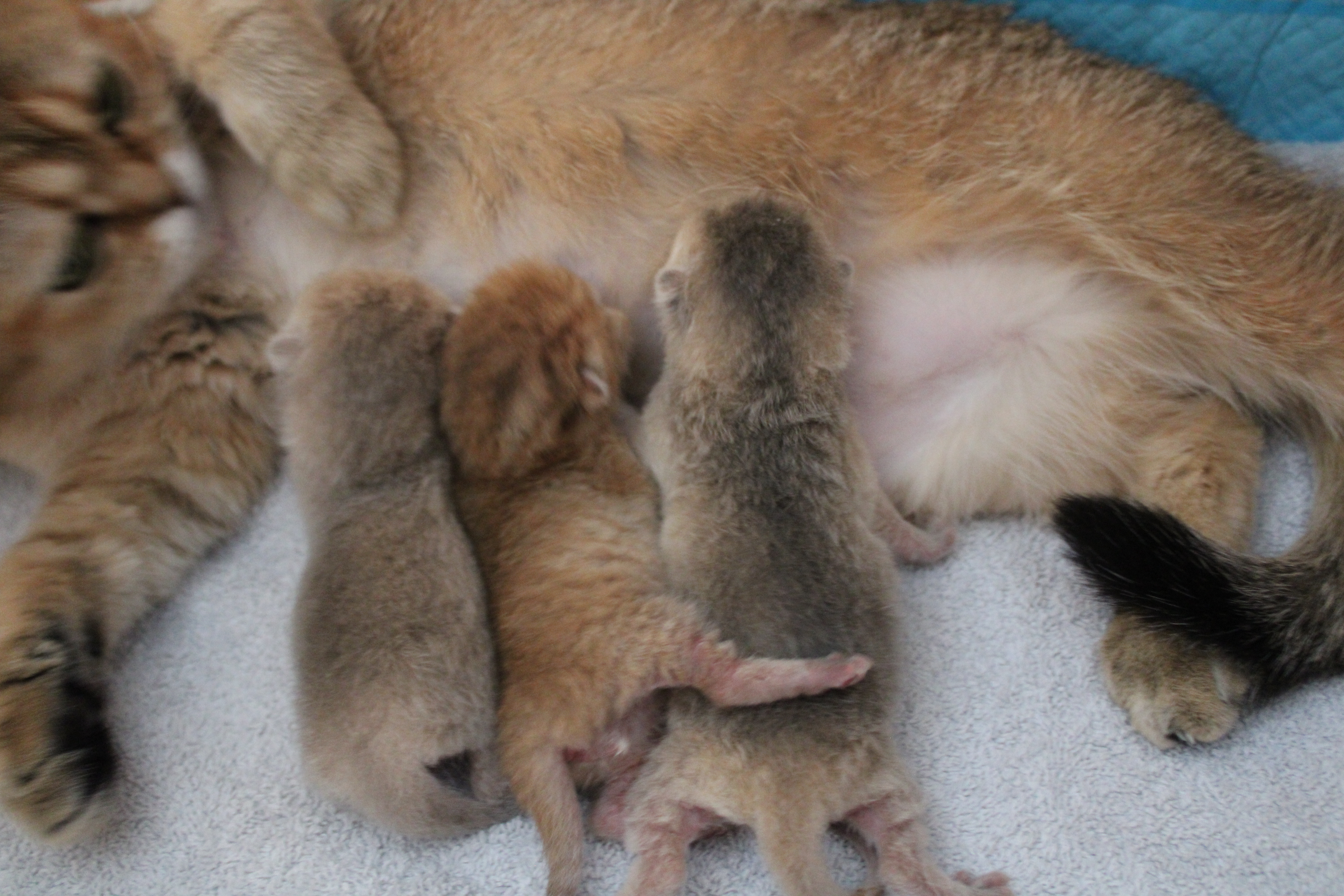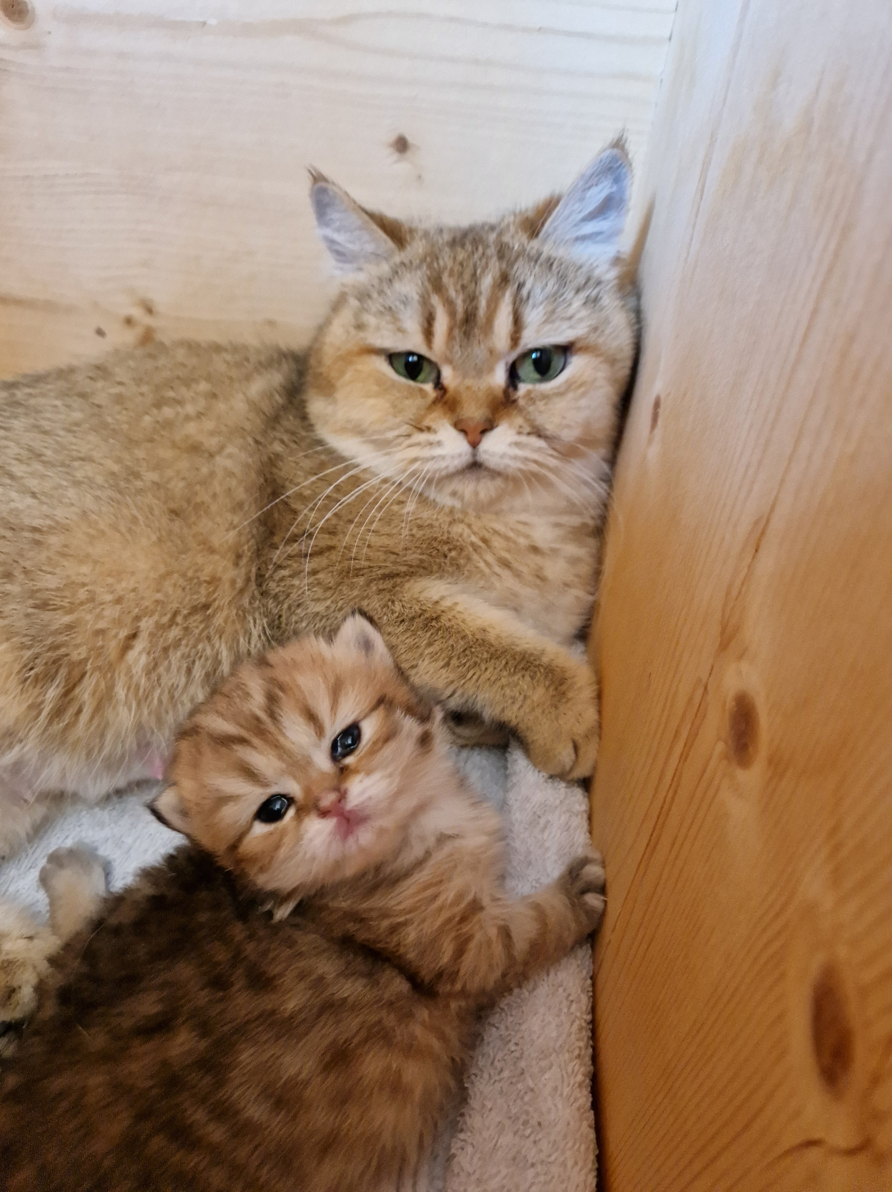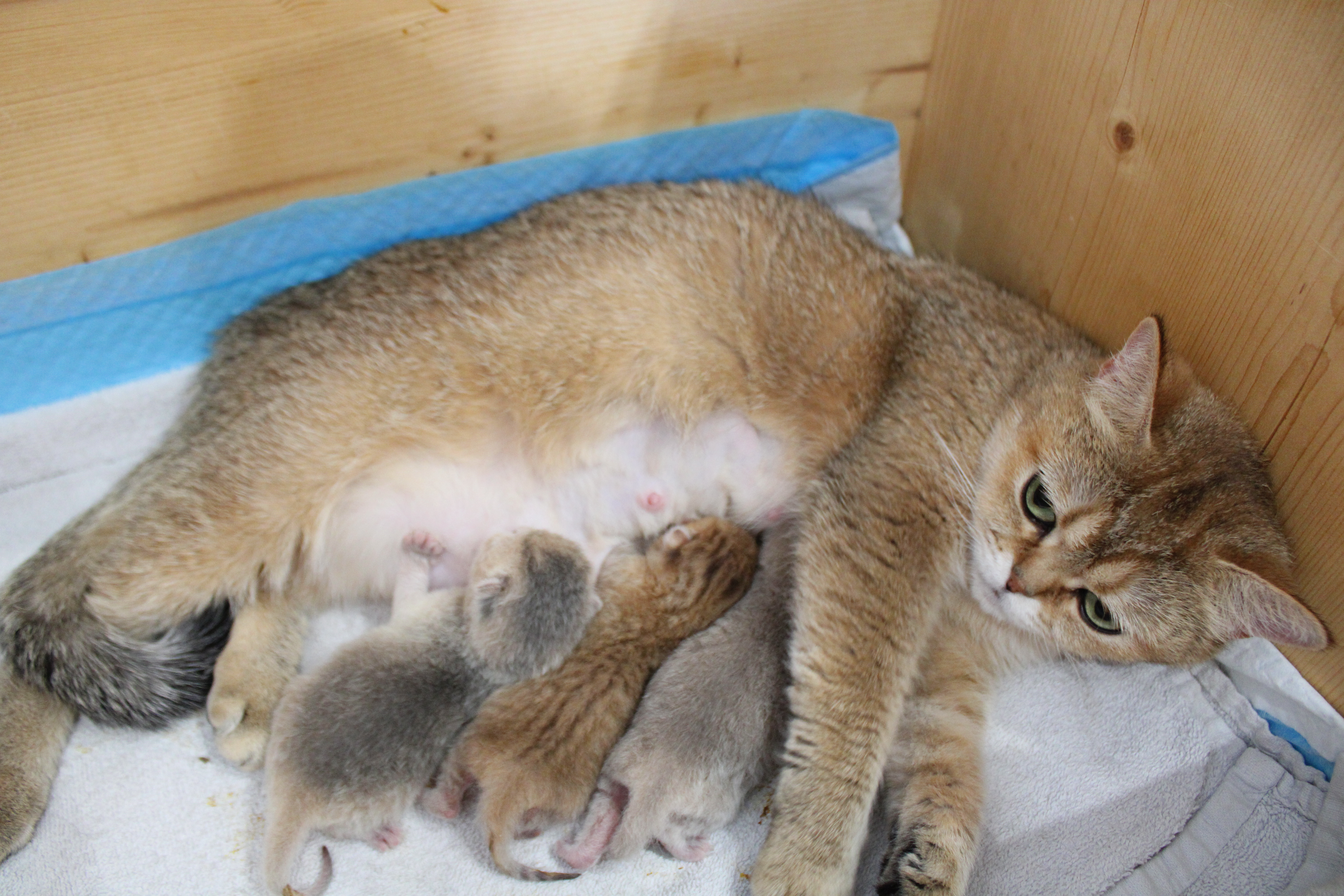 Notre belle Utah nous a offert deux magnifiques chatons ce samedi, nous avons un black golden et un blue golden. Ils sont en pleine forme.