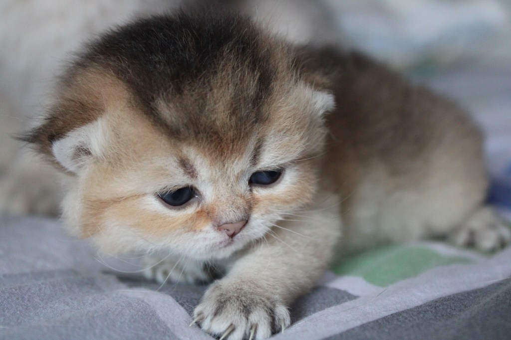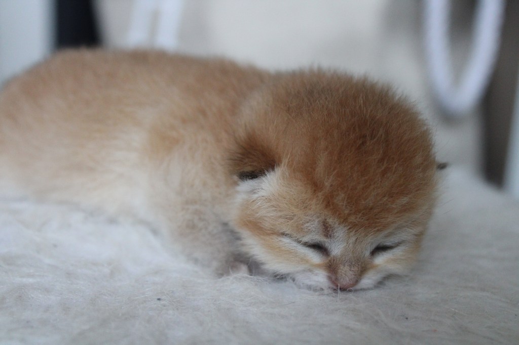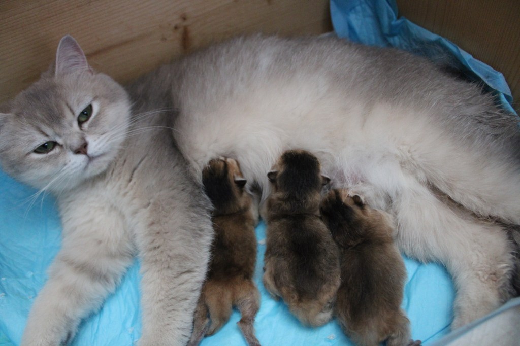 La mise-bas de Winnie s’est bien passée, c’était cette fois-ci la dernière de l’année. Il faudra attendre début 2026 pour voir d’autres chatons. Tout se passe bien, c’est une super maman. Nous avons 4 petits chatons en pleine forme. Des couleurs très différentes du blue golden, du black golden et du golden point.