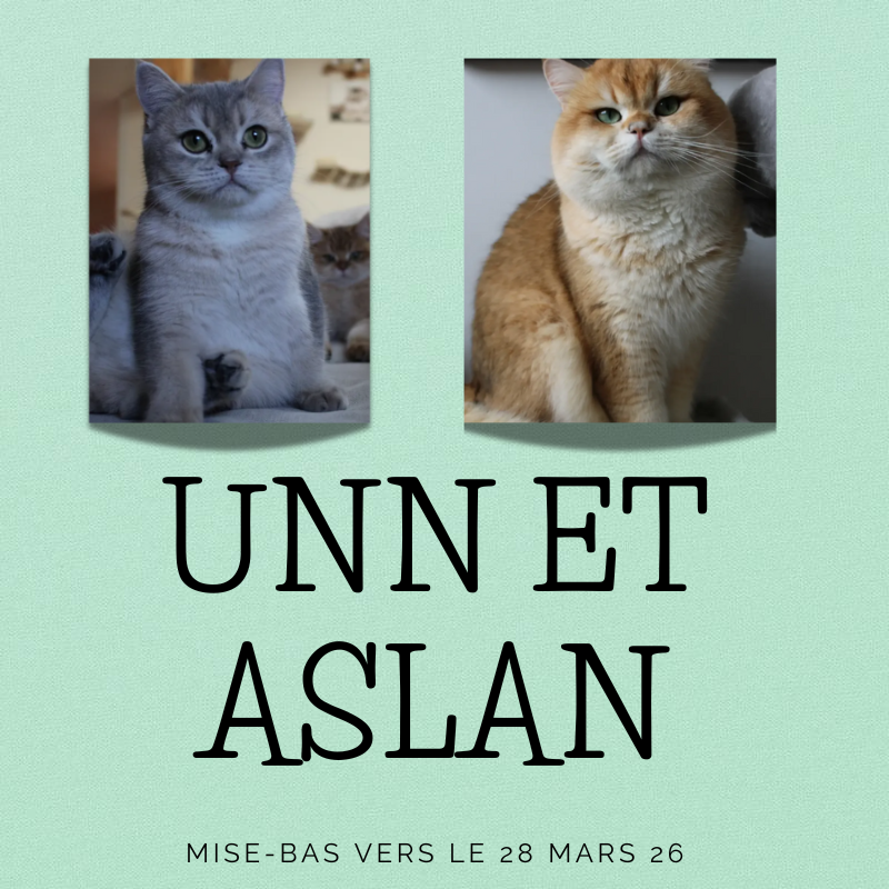 Pour cette deuxième portée de 2026, Unn et Aslan qui nous ont toujours fait de magnifiques chatons. Les chatons seront des Scottish Straight.